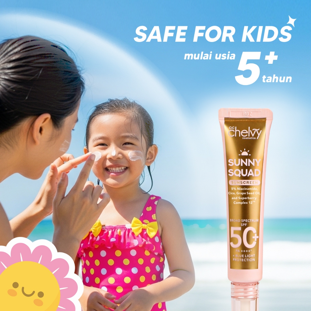 Chelvy Sunny Squad Hybrid Sunscreen Spf 50+ Pa++++ | Sunscreen Tone Up Mencerahkan Moisturizer Tabir Surya Sunblock Uva