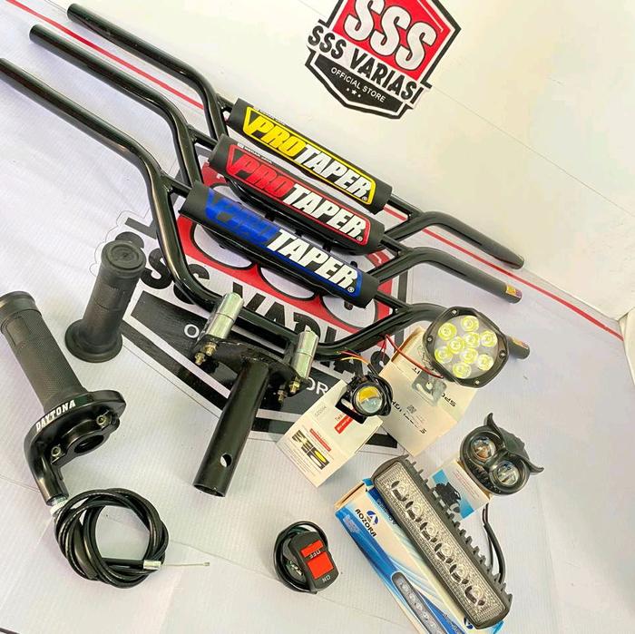 PAKET KOMPLIT STANG TRAIL HITAM+DUDUKAN/ADAFTOR STANG+GAS SPONTAN POLOS+LAMPU LED BONUS SAKLAR LAMPU - LAMPU 9MATA, HON