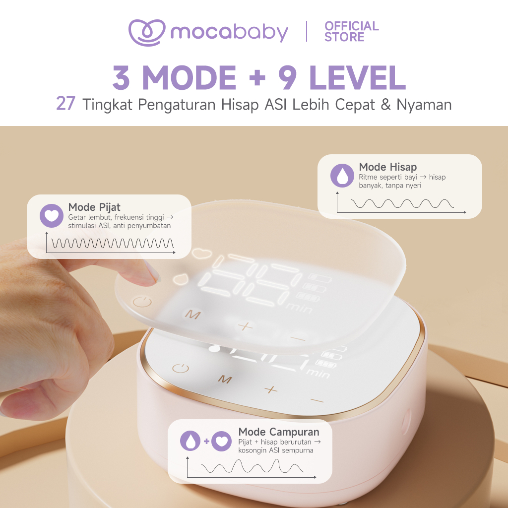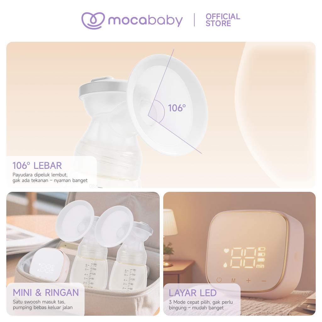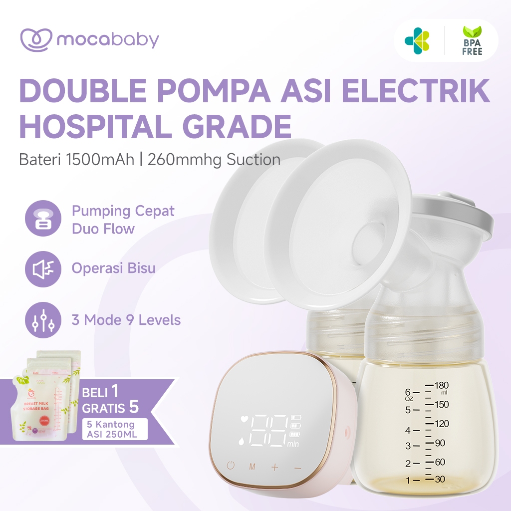 Mocababy Pompa ASI Elektrik Double 2in1 2200mAh Double Botol Breast Pump Dengan Dot (ASI Bayi Baru Lahir) Hisap Kuat BPA