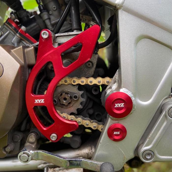 COVER TUTUP GEAR CHAIN DEPAN KAWASAKI NINJA R RR SS FULL CNC - MERAH-KAWASAKI
