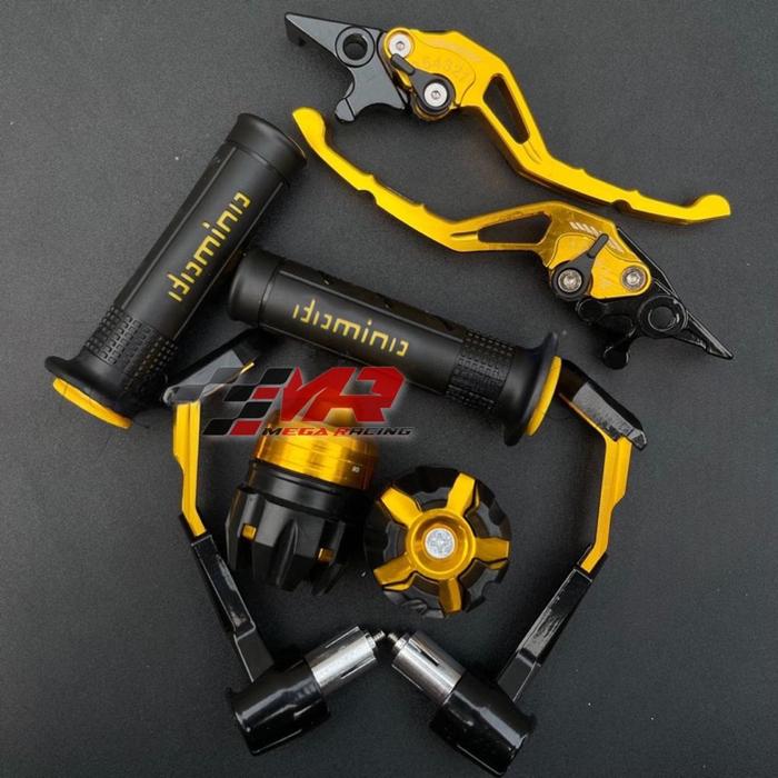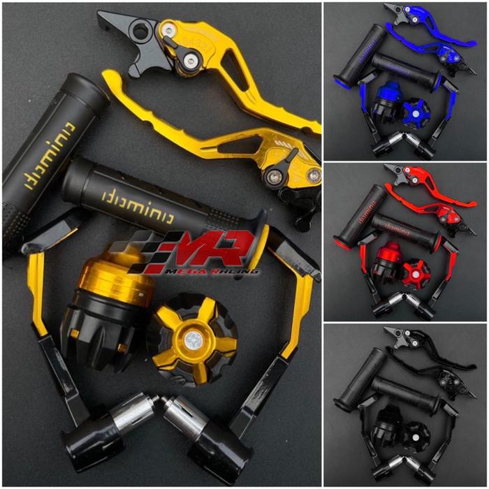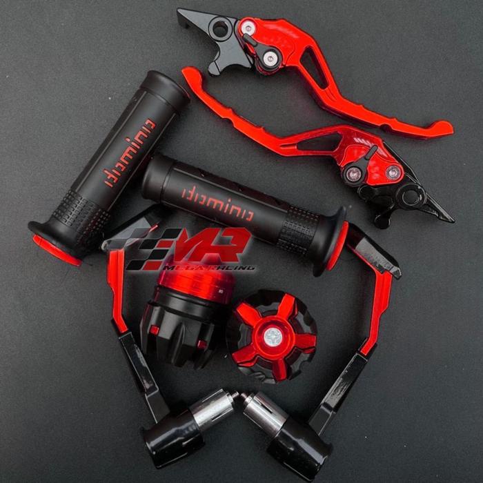PAKET VARIASI MOTOR 4 ITEM - HANDLE JARUM CNC + PROGUARD ROBOT D1 + JALU AS RODA DEPAN + HANDGRIP SISIK KARET EMPUK UNIV