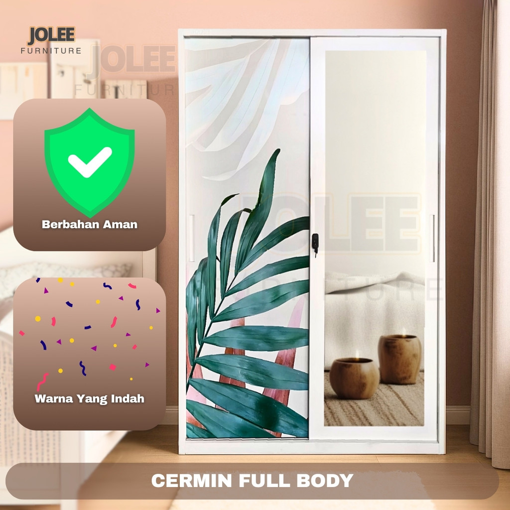 JOLEE-Lemari Pakaian Besi Lemari Pakaian Pintu ganda biasa 85cm 2 pintu 1 Hanger Cermin Minimalis