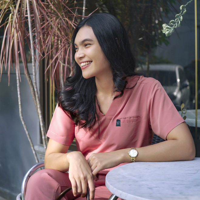 V NECK - FIRST LINE 01 Scrubs SS Lengan Pendek Baju Jaga Theatre Blues