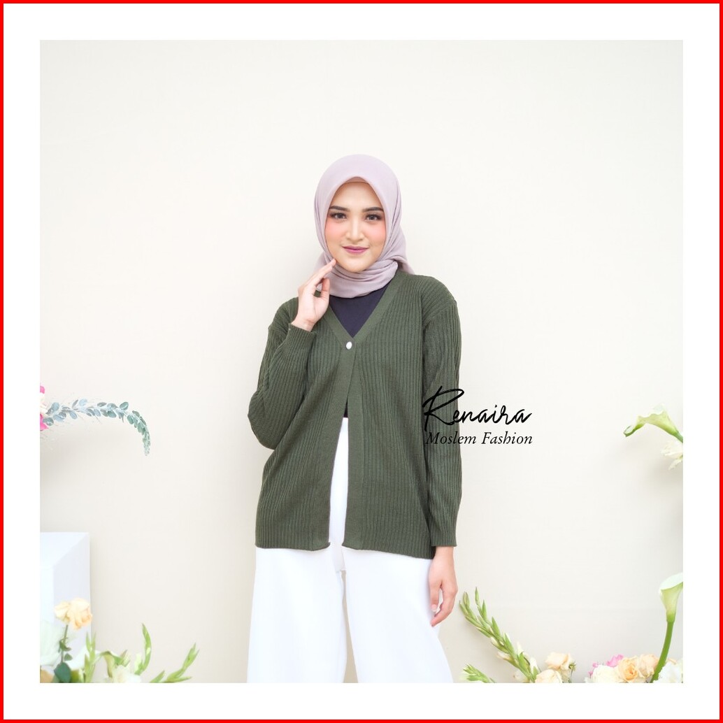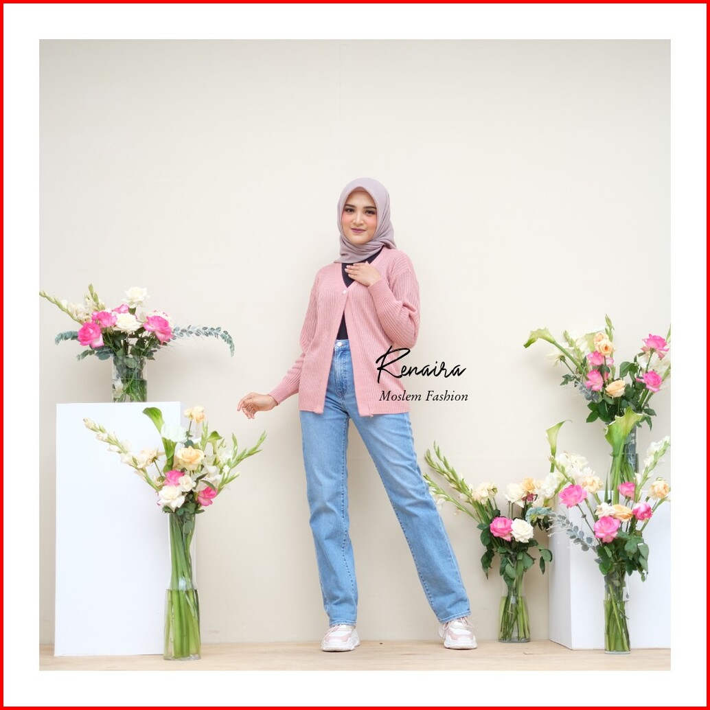 Renaira Cardigan Rajut Basic Kancing Mutiara Rajut Atasan Wanita - Renaira 01