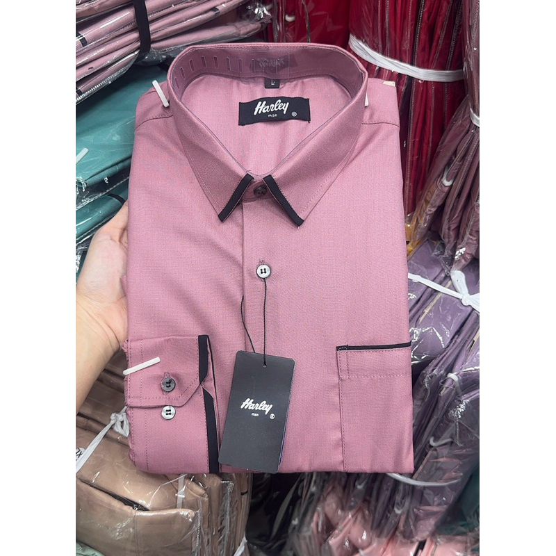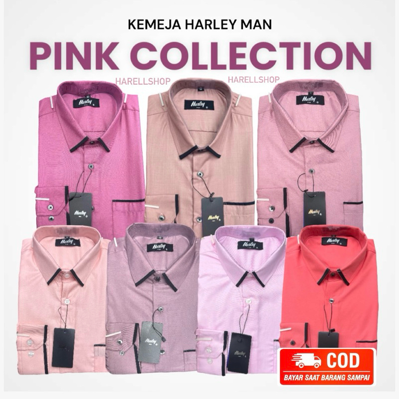 READY STOK KEMEJA HARLEY MAN PINK COLLECTION warna peach salem rose gold dusty pink violet baby pink tangan panjang