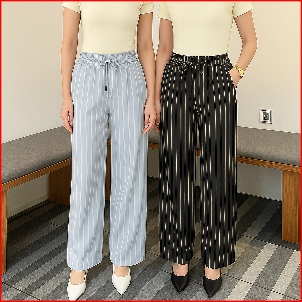 Everyday Pants - Stripe Pants Bangkok Celana Panjang Wanita Baggy Kantor Kuliah Motif Garis Kulot Pinstripe - Celana For