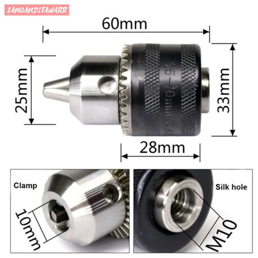 Kepala Mesin Bor 10mm 13mm Drat Drill Chuck Key Set Kepala Bor Tangan 10mm & 13mm