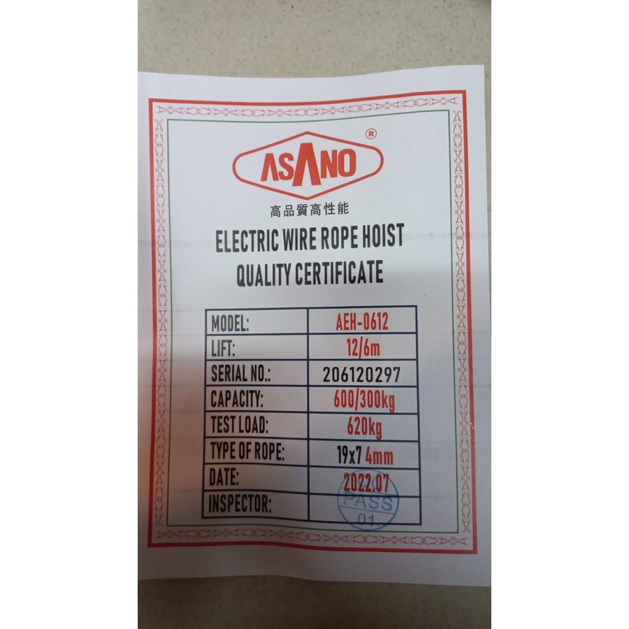 KATROL ASANO MINI HOIST 600Kg 12m TAKEL LISTRIK ELEKTRIK AEH-0612