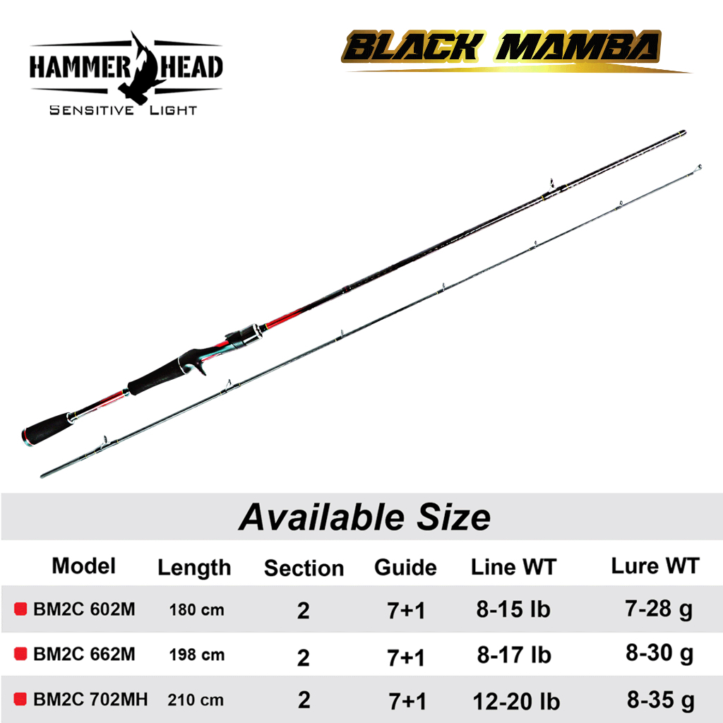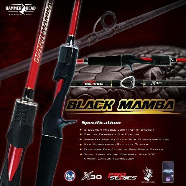 JORAN PANCING BC FUJI HAMMER HEAD BLACK MAMBA PRO SERIES BAITCASTING FUJI 180CM - 210CM BAHAN CARBON X30 MID JOINT