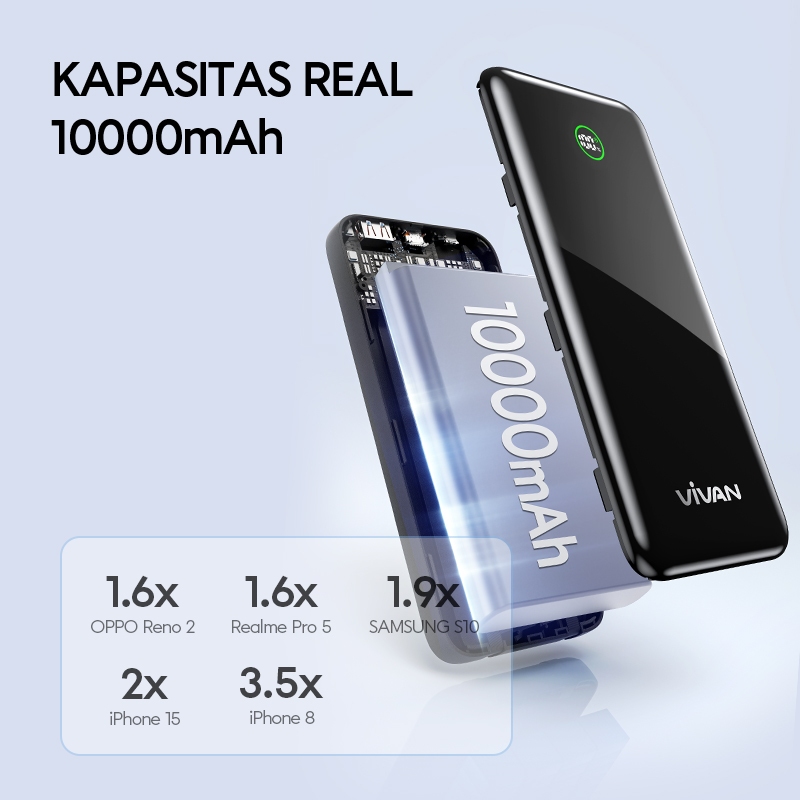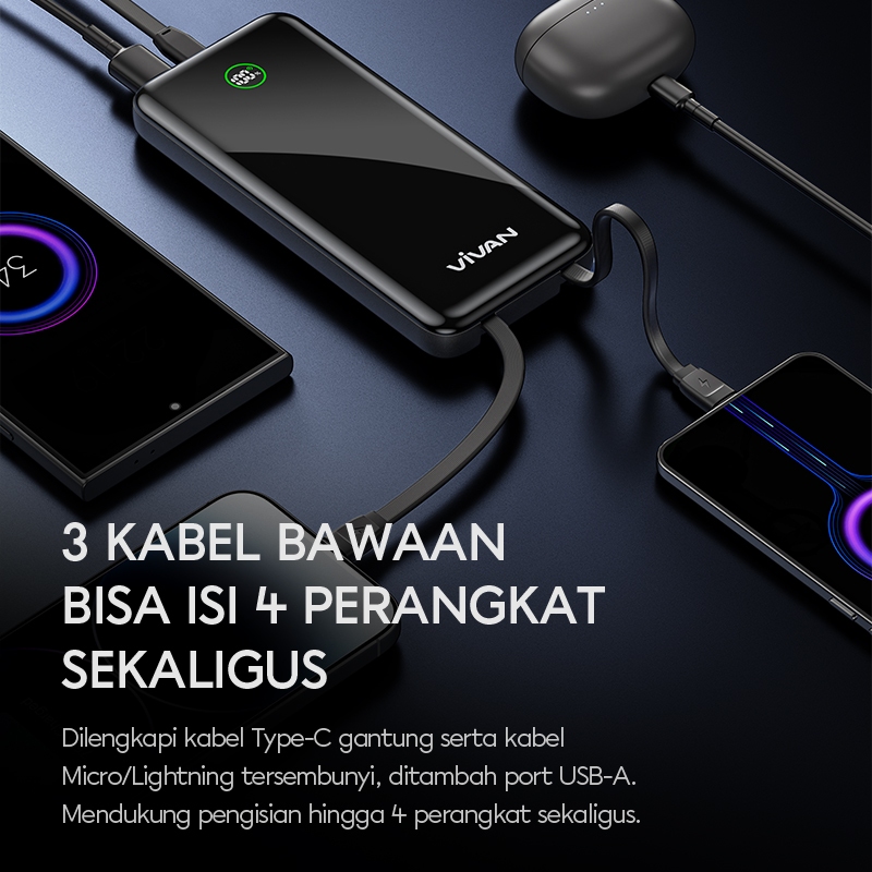 [NEW LAUNCH] VIVAN Powerbank 10000mAh Fast Charging 22.5W LED Display 4 Output 3 Kabel Bawaan Micro/Lightning/Type-C Pen