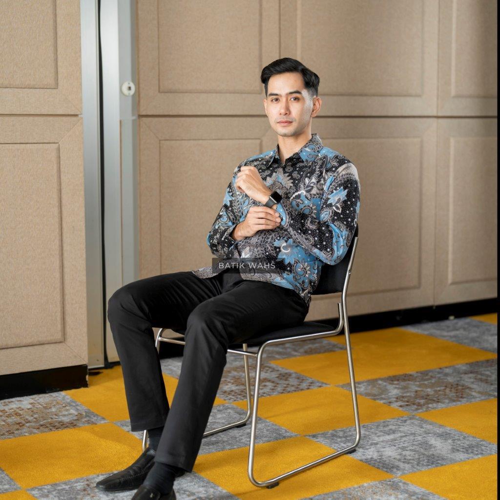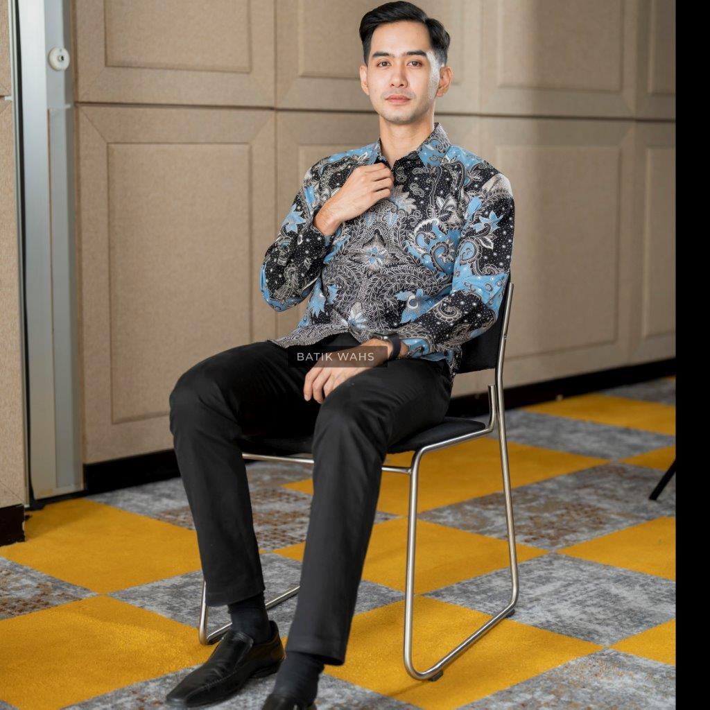 SATYA BIRU MUDA KEMEJA BATIK SOLO LAPIS FURING KWALITAS PREMIUM