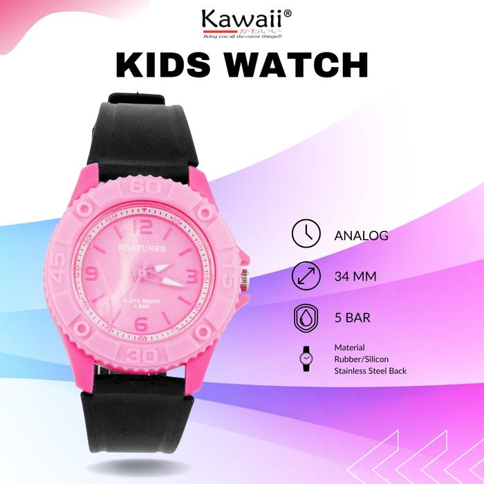 Fortuner Jam Tangan Arloji Anak Kids Watch Analog Water Resist Tahan Air Rubber Karet Dashae Fashion - PINK
