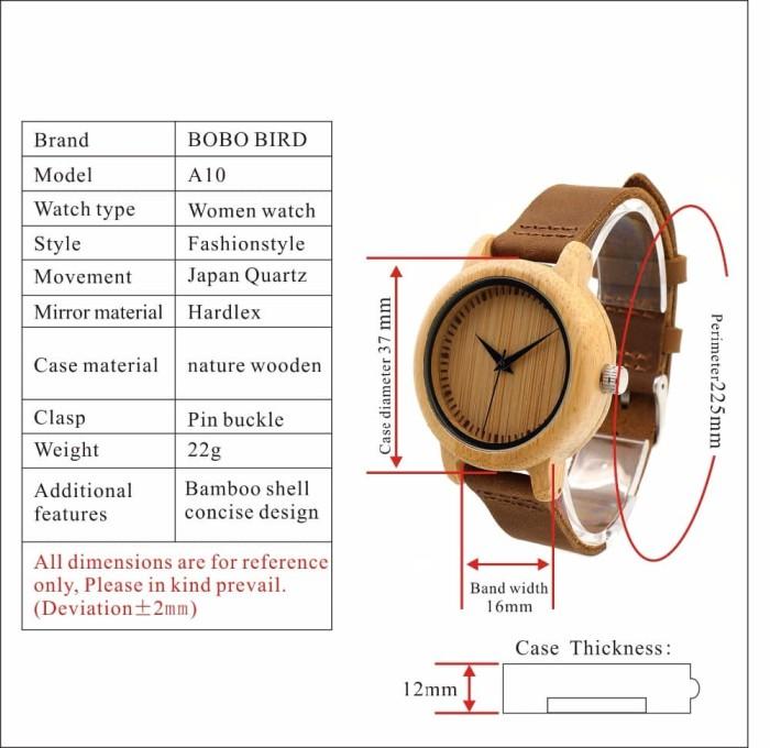 BOBOBIRD-A10 Jam Tangan Kayu Wanita Natural Bamboo