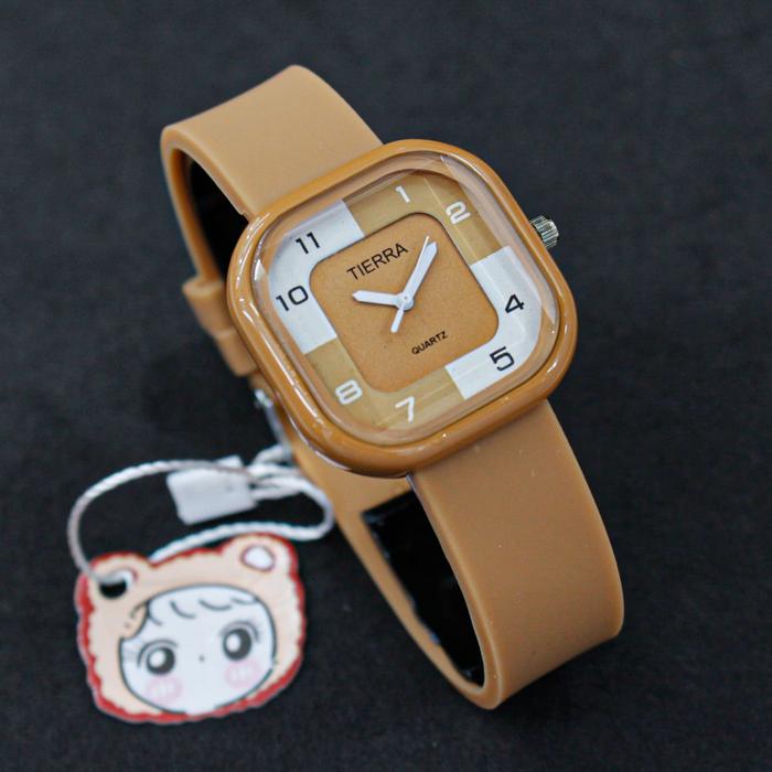 FREE GELANG - JAM TANGAN WANITA TIERRA 4717 TALI RUBBER TAHAN AIR - COKSU