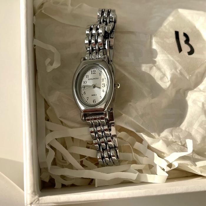 KOOLEY Jam Tangan Wanita Doukou Oval DK11 Stainless Vintage Watch Women c06 - Abu muda white