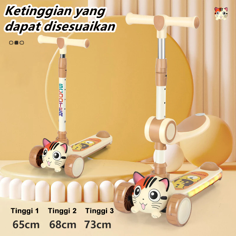 Skuter Anak Roda 3 Mainan Scooter 2in 1 Otoped Bisa Lipat dengan Lampu Musik dan Kursi