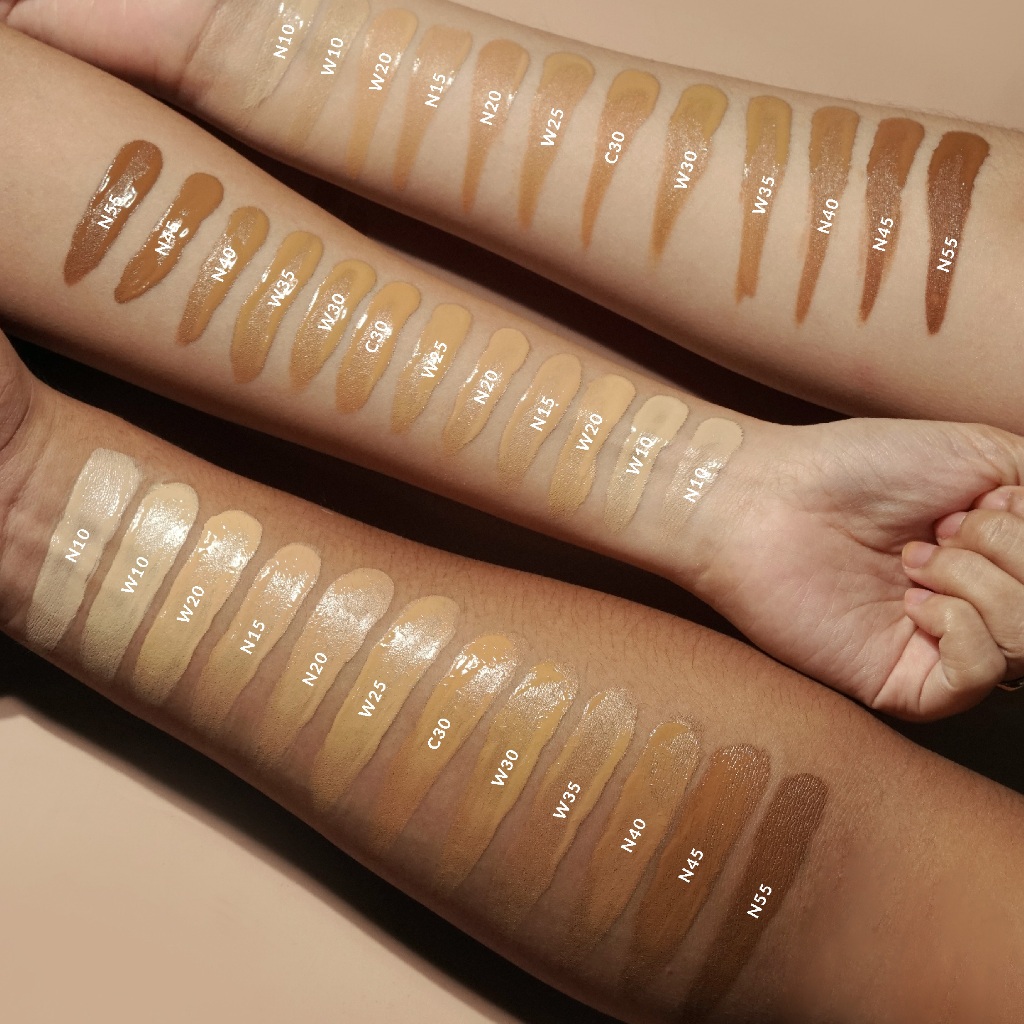 N10 - Ivory, W10 - Warm Ivory, W20 - Warm Beige, N15 - Medium Ivory, N20 - Beige, W25 - Warm Med Beige, C30 - Cool Sand, W30 - Warm Sand, W35 - Warm Med Sand, N40 - Amber