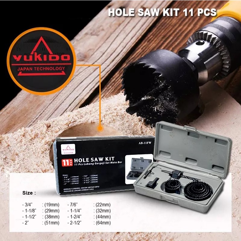 YUKIDO Holesaw Kit Set 11pcs -Mata Bor Kayu Kit Set 11 Pcs PROMO Asia Mandiri Teknik