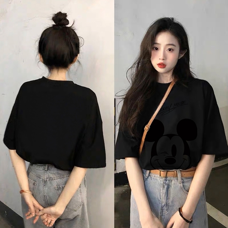 [Star] Yesgirl Cetakan Mickey Mouse Cotton Atasan Kaos /kaos lucu wanita T-shirt Lengan Pendek Oversize Wanita |kaus wanita kor