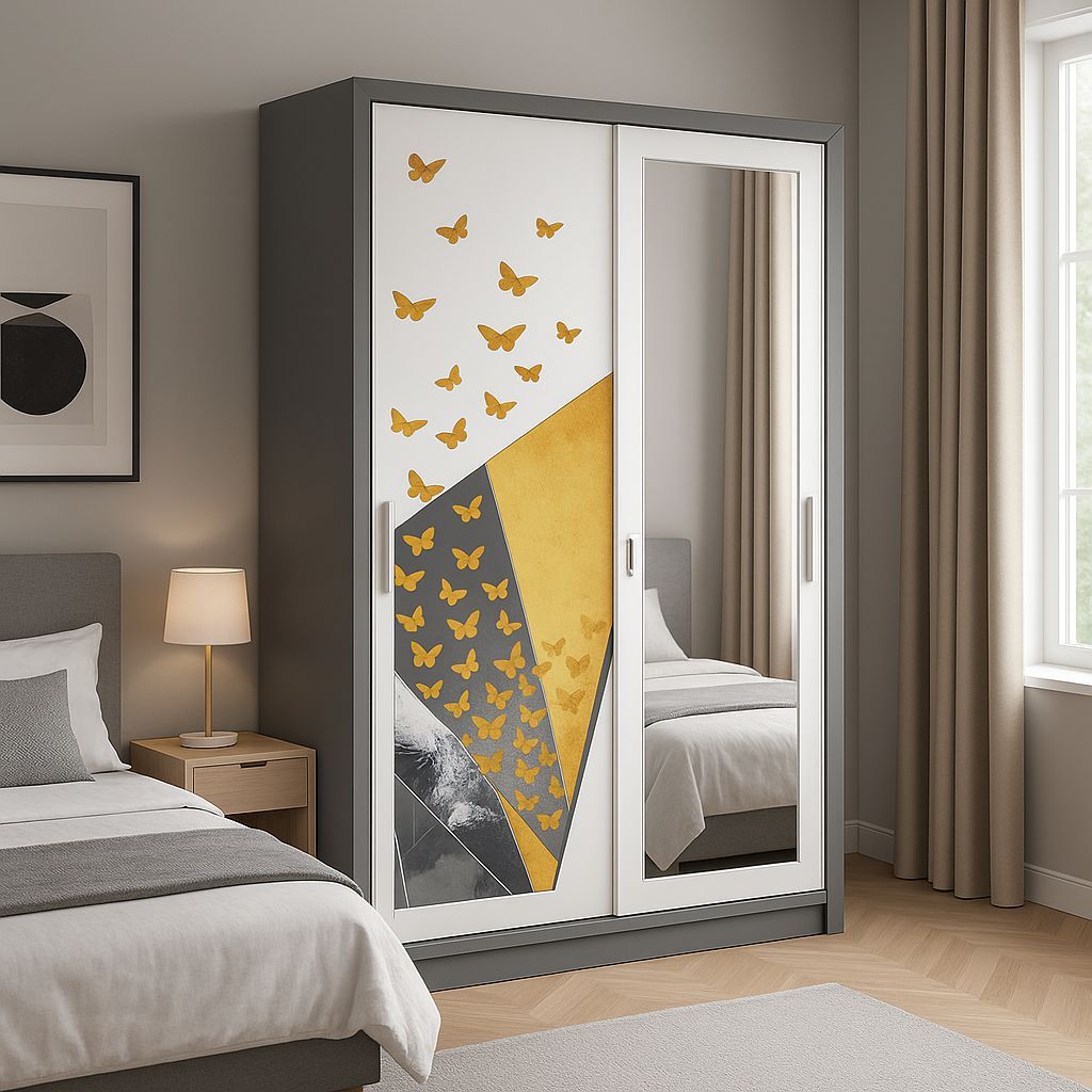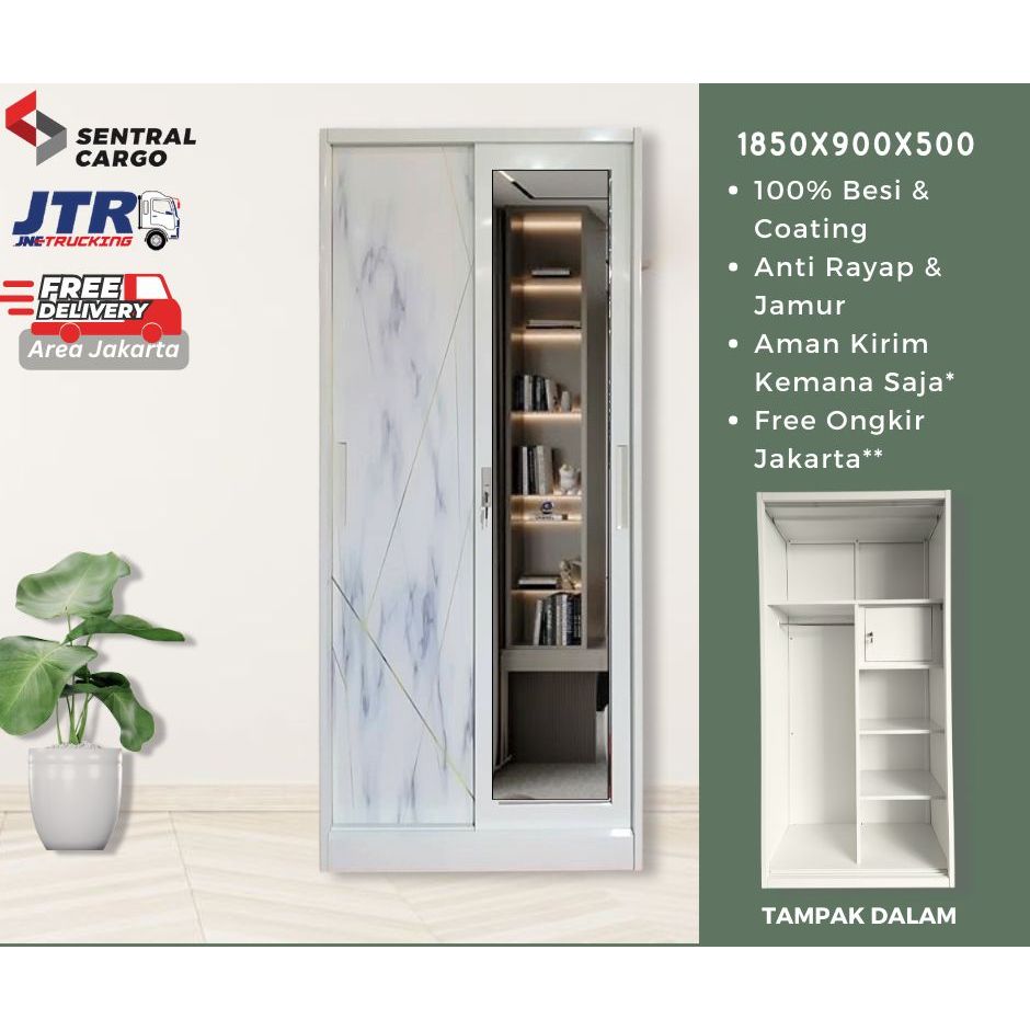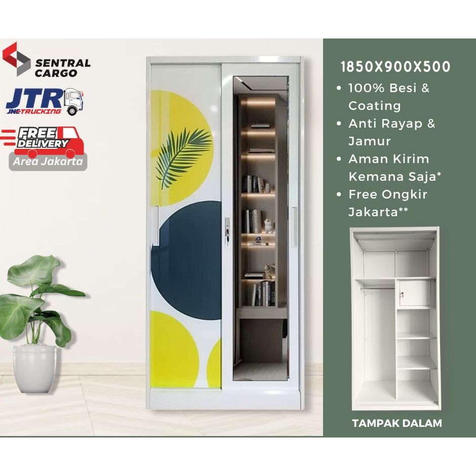 Lemari Pakaian Besi Dewasa Sliding Door Pintu Geser Dengan Kaca Cermin 2 Pintu Uk. 185x90x50