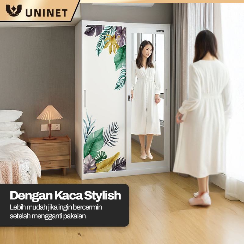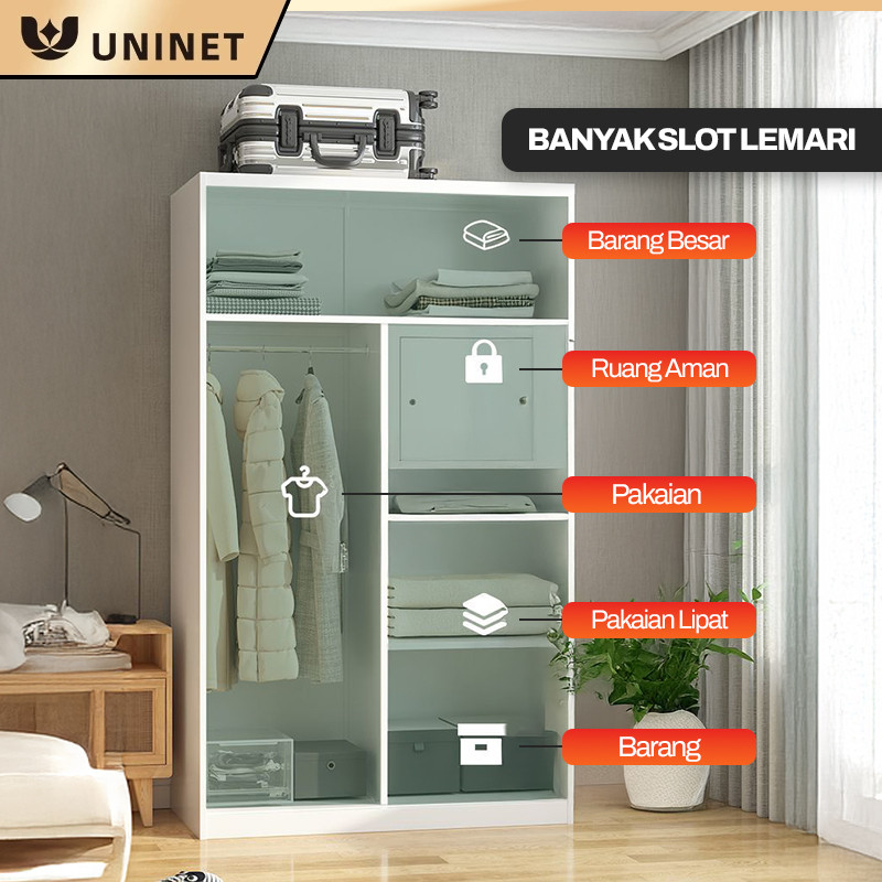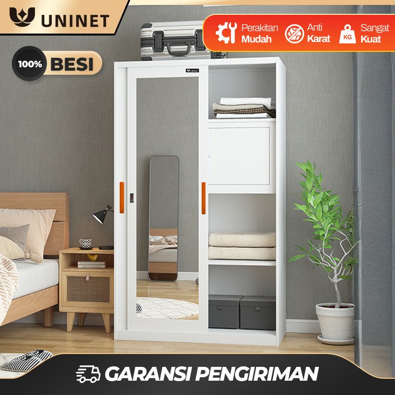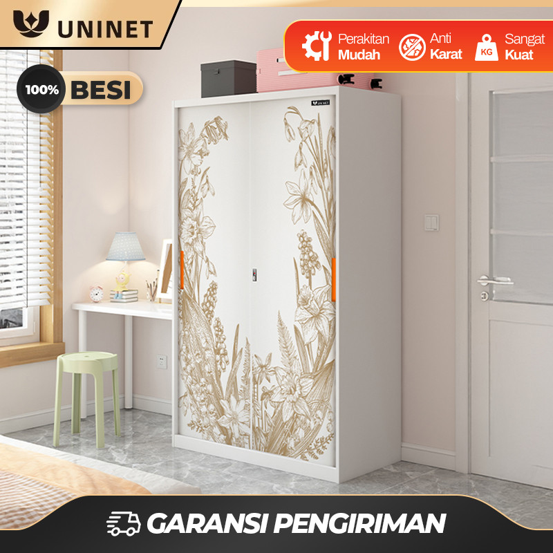 UNINET Lemari Besi Pakaian 2 Pintu Sliding | Lemari Baju Baja Canai Anti Rayap