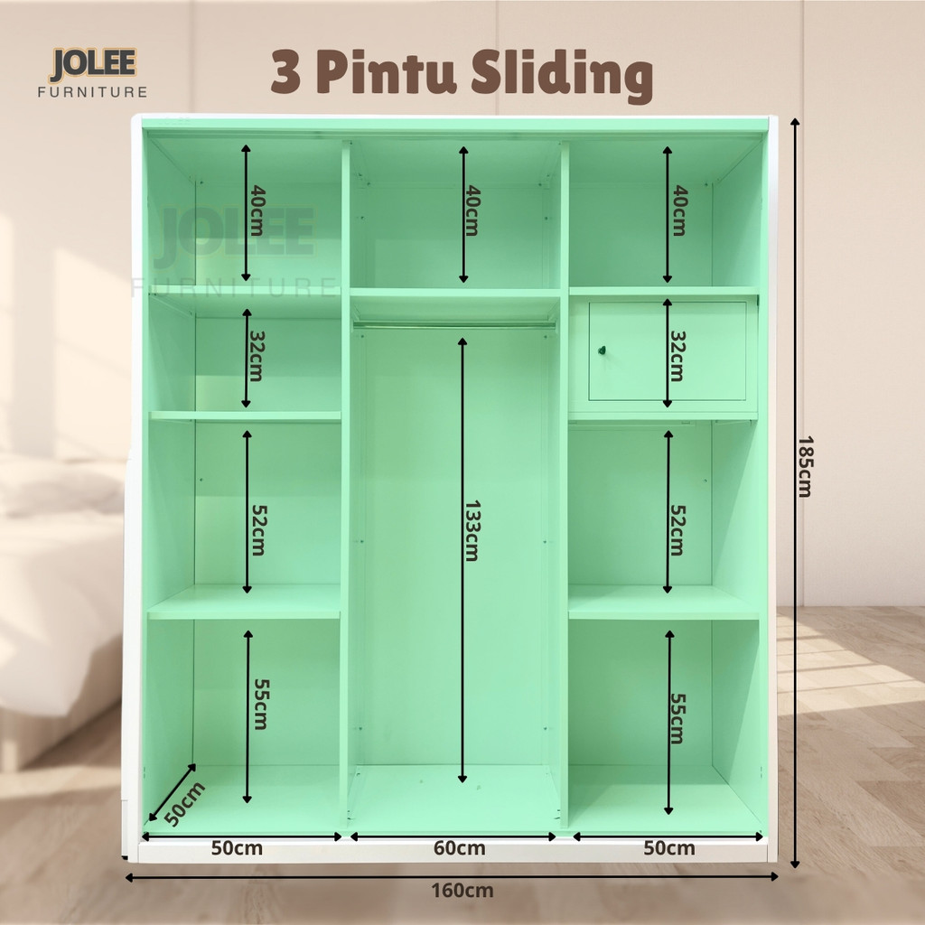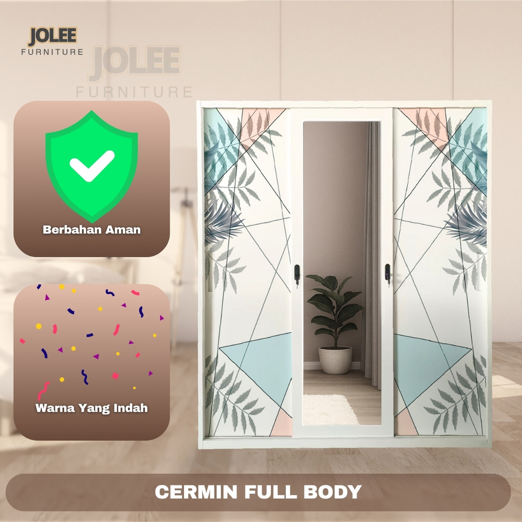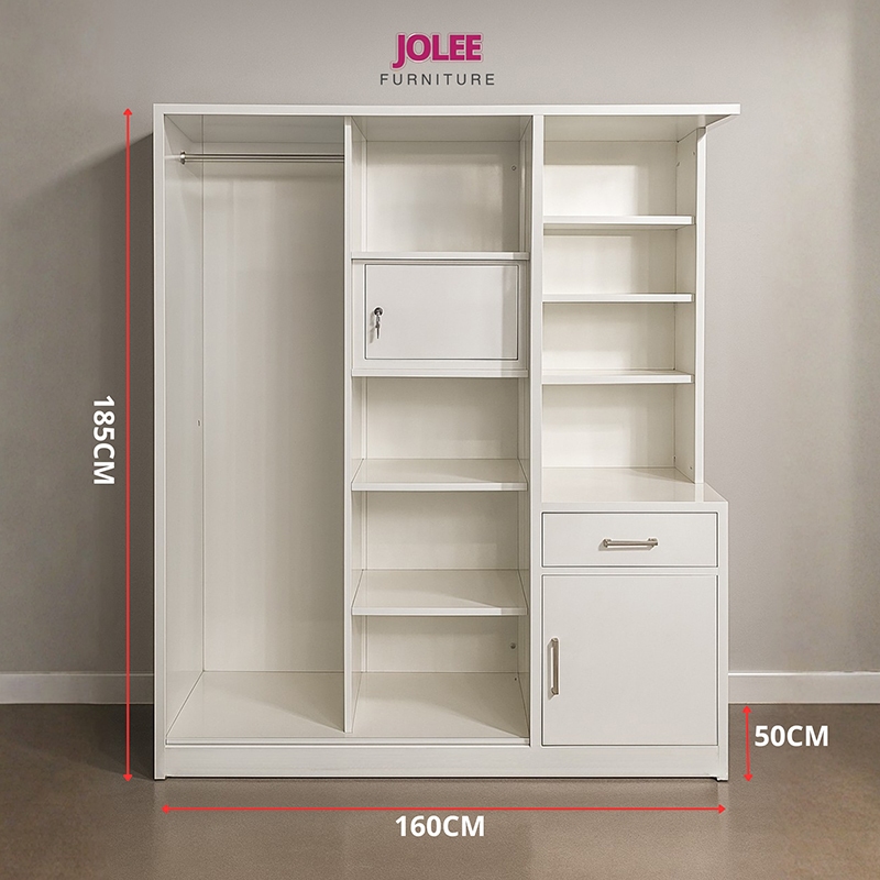 JF GMAE-Lemari serba besi pintu geser cermin ukuran 160cm batang pengering pakaian +kunci kata sandi