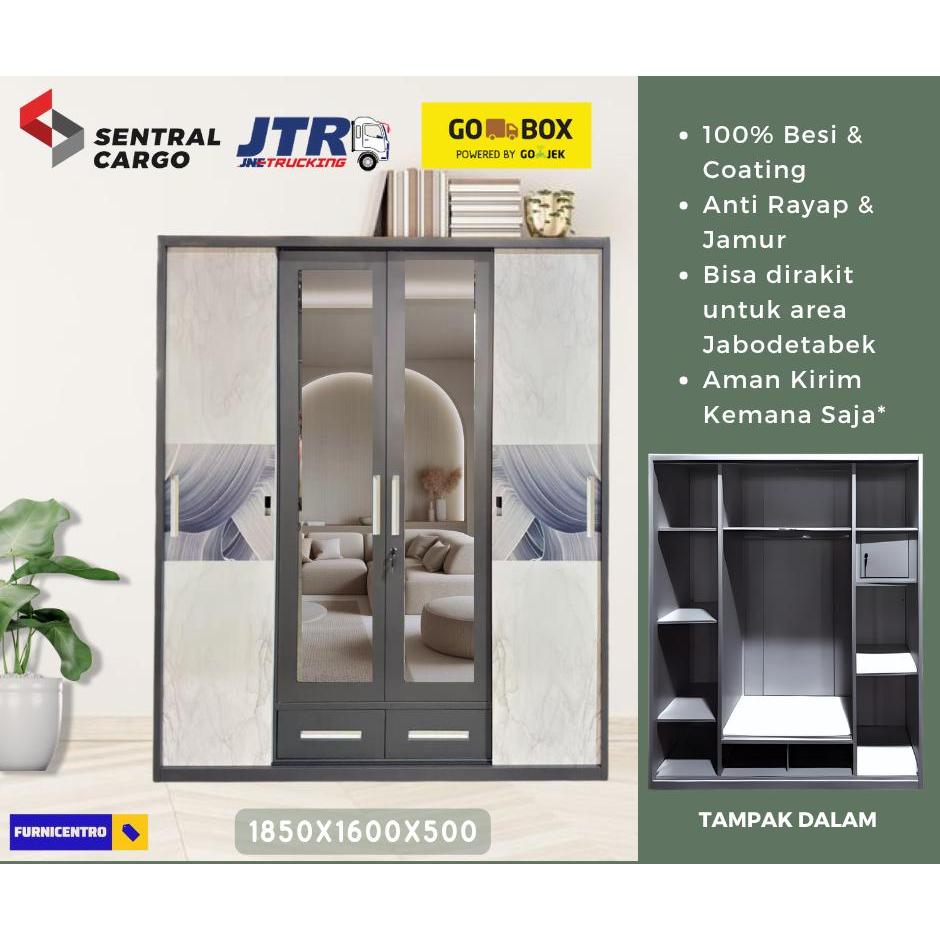 Lemari Pakaian Besi Dewasa Sliding Door Pintu Geser Dengan Kaca Cermin Uk. 185 x 160 x 50