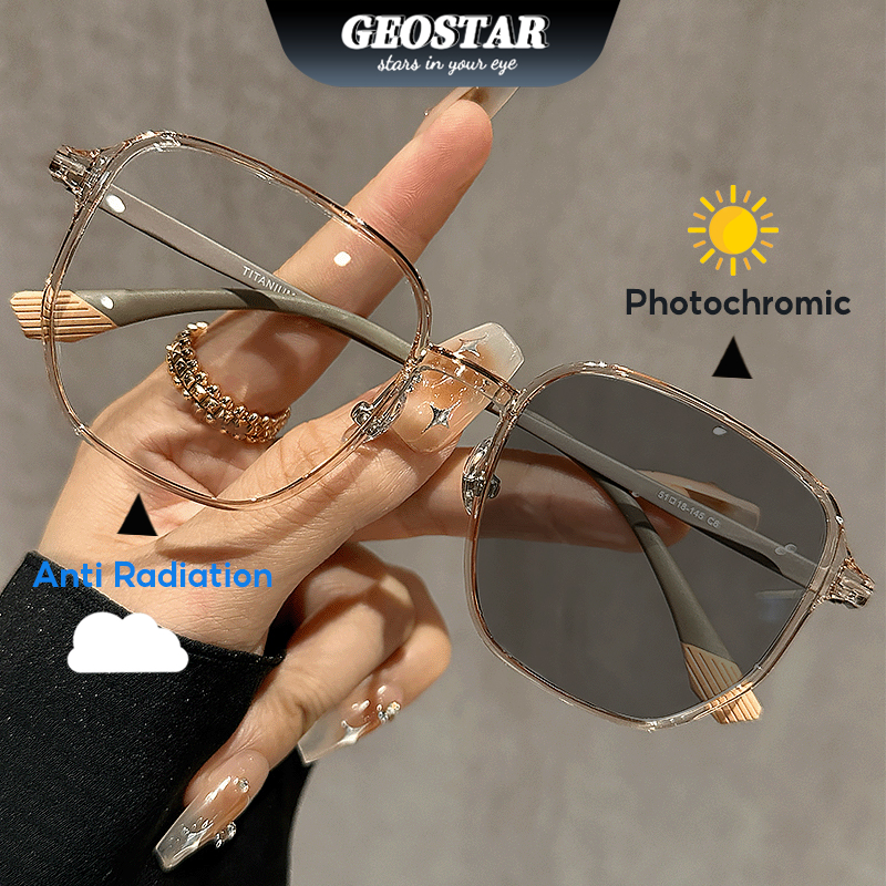 Kacamata Photochromic Anti Radiasi Korea Untuk Wanita Pria Komputer Square Frame Kaca