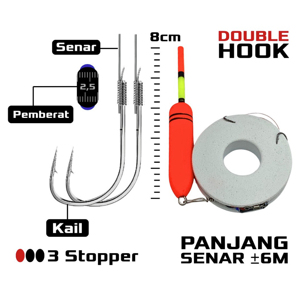 1 Paket Joran Tegek Pancing Teleskopik Fiberglass Lengkap dengan Senar Pelampung dan Kail Double Hook Siap Pakai