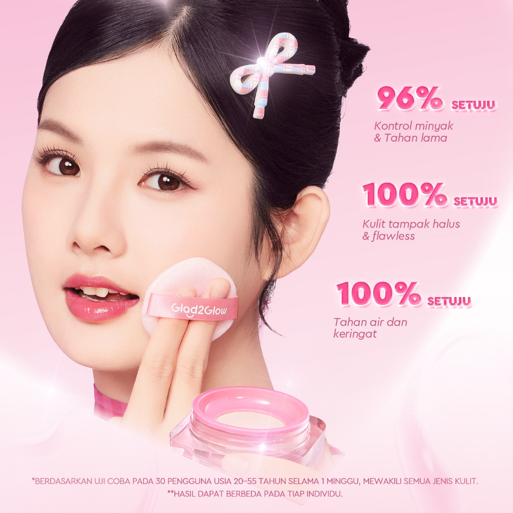 Glad2Glow 2Ln1 Velvet Makeup Set-Loose Powder+Cushion Coverage Tinggi Second Skin Flawless Semi Matte Proof Tahan Lama I