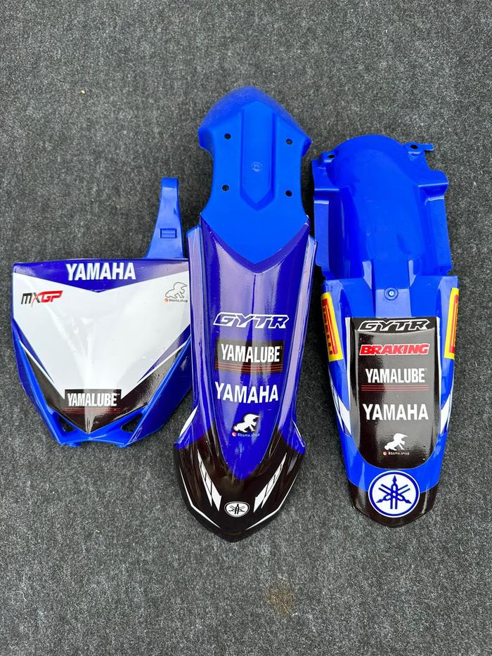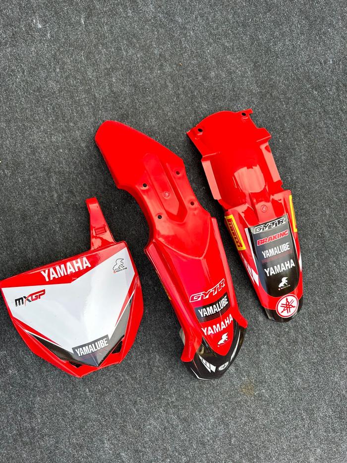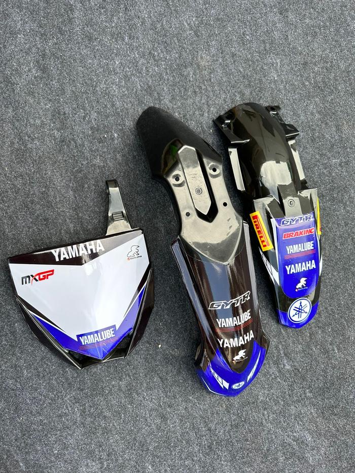 SPAKBOR DEPAN BELAKANG DAN PAPAN NOMOR YZ 85 NEW DAN STRIPING - PUTIH