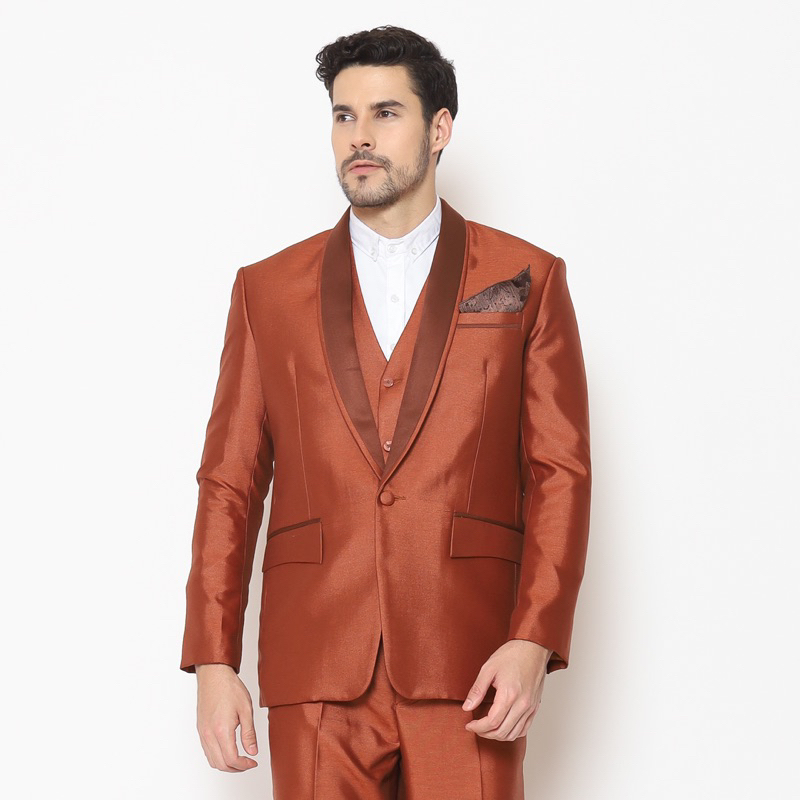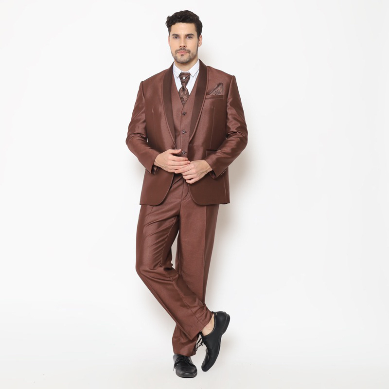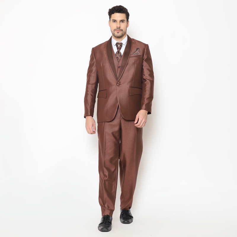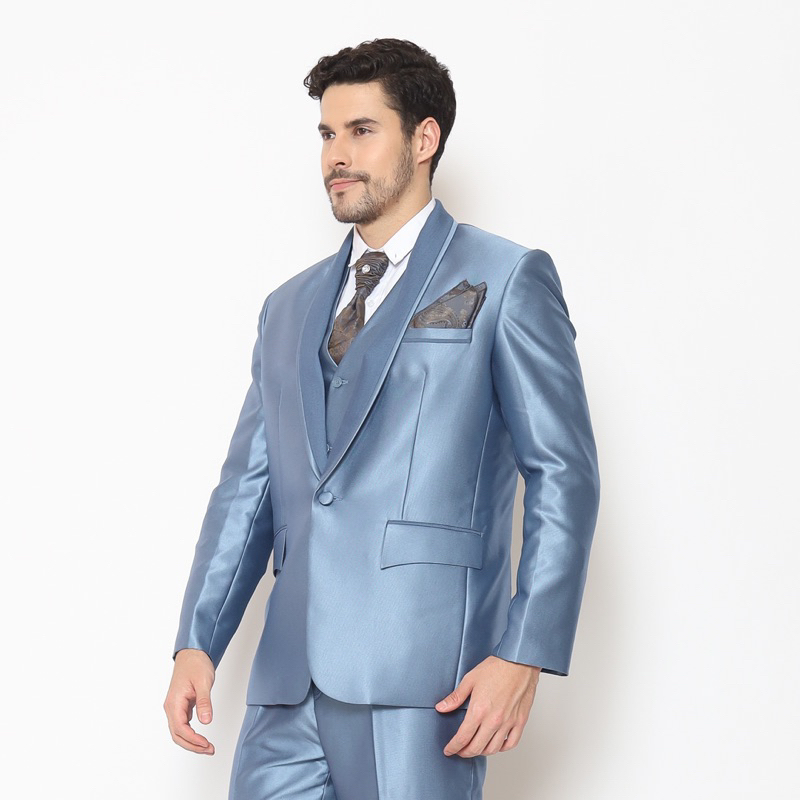 Full Set Jas Pria Pengantin Formal Setelan Semi Wool Full Jas + Rompi + Dasi & Cover - YUNG