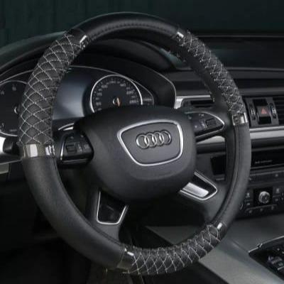 Sarung Stir Cover Setir Mobil Bahan Kulit Motif ZIGZAG Premium Quality - Putih Hitam M (37-38 CM ) Universal