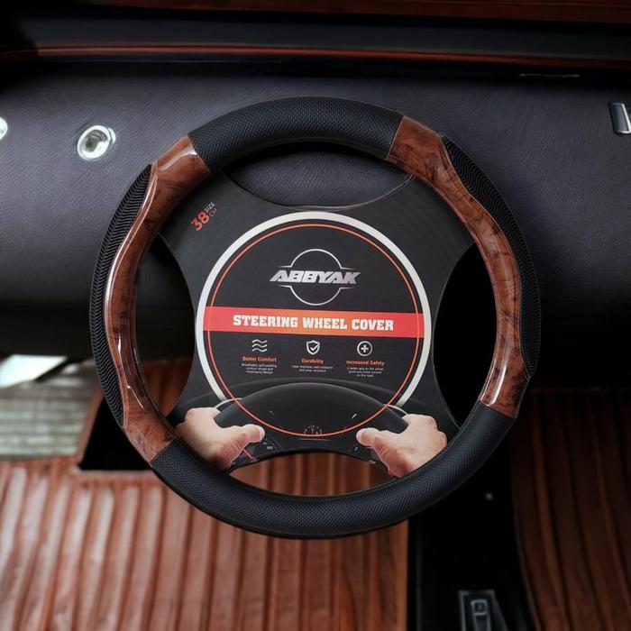 sarung Setir Mobil motif kayu Sarung Kulit Stir Mobil Cover -anti slip - Abu-abu