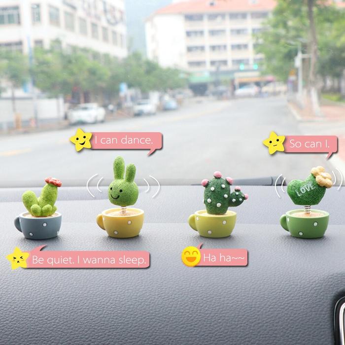 Pajangan Mobil Kaktus 4 in 1 Kepala Goyang Bunga Pot Kaptus Hiasan Model Lucu Dashboard - Warna