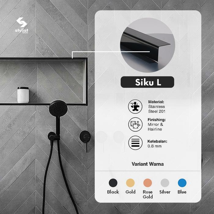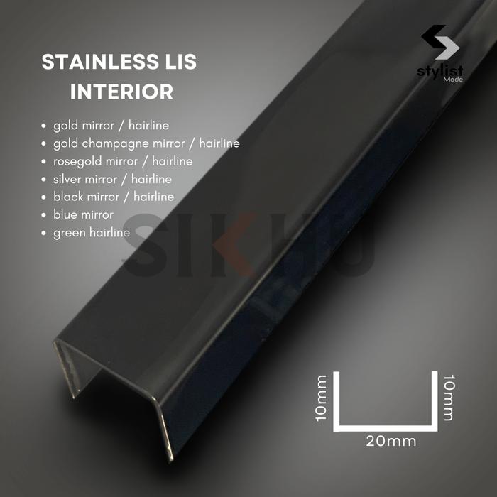 Stainless Lis Interior | Lis U BLACK 10 x 20 x 10mm - HAIRLINE 3050mm