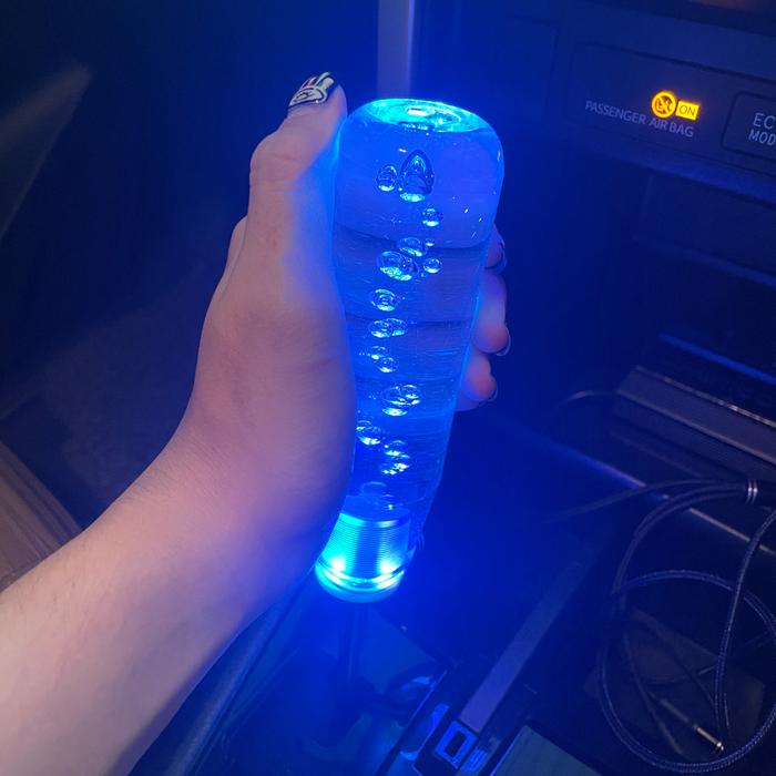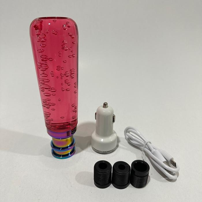 Knob Persneling / Tuas Mobil Manual Akrilik Kombinasi Aluminium Hologram Lampu LED Menyala Pelangi - Merah