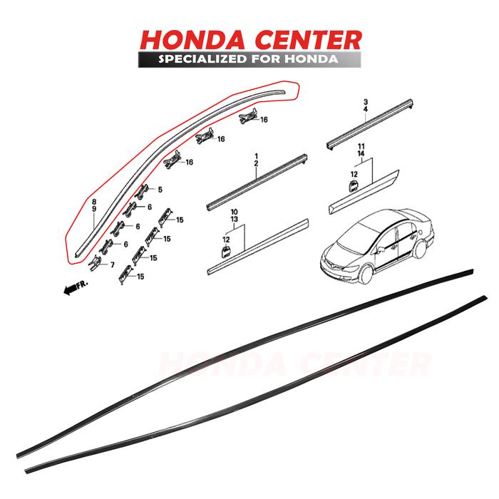 Karet List Kaca Depan Civic Fd Fd1 2006 2007 2008 2009 2010 2011 Karet List Atap Moulding Roof - KANAN