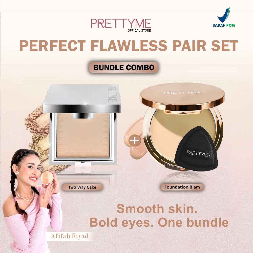 Prettyme Bundling Foundition Balm + Two Way Cake Setting Powder Matte Finish Oil Cintrol And Stay 24 Hours