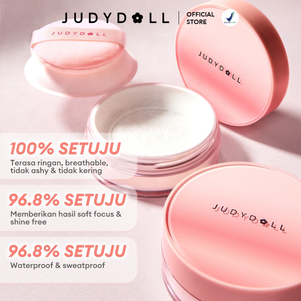 Judydoll Blurring Loose Powder - 8Gr (Bedak Tabur Dengan Hasil Finish Matte & Tahan Lama, Smoothing 12 Jam, Translucent
