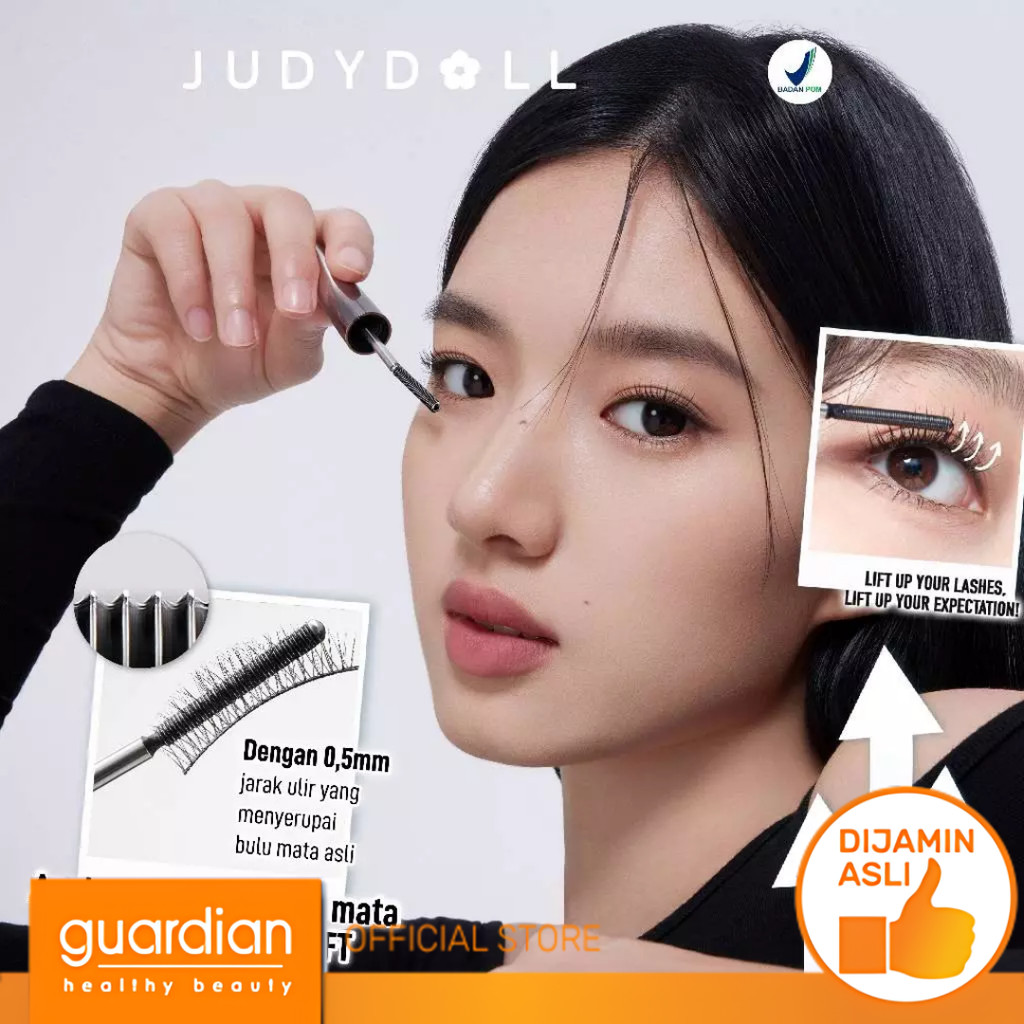 Judydoll Fine Curling Iron Mascara - Maskara Besi Waterproof, Smudgeproof, Anti Clumpy, Hasil Lentik & Natural Tahan Lam