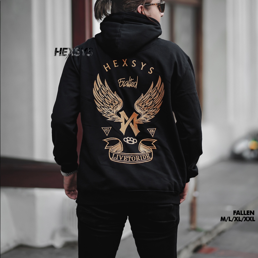 Bossque X Hexsys - Fallen Hoodie Pria Original Bordir Racing Sweter Pria Sweater Hodie Pria Distro