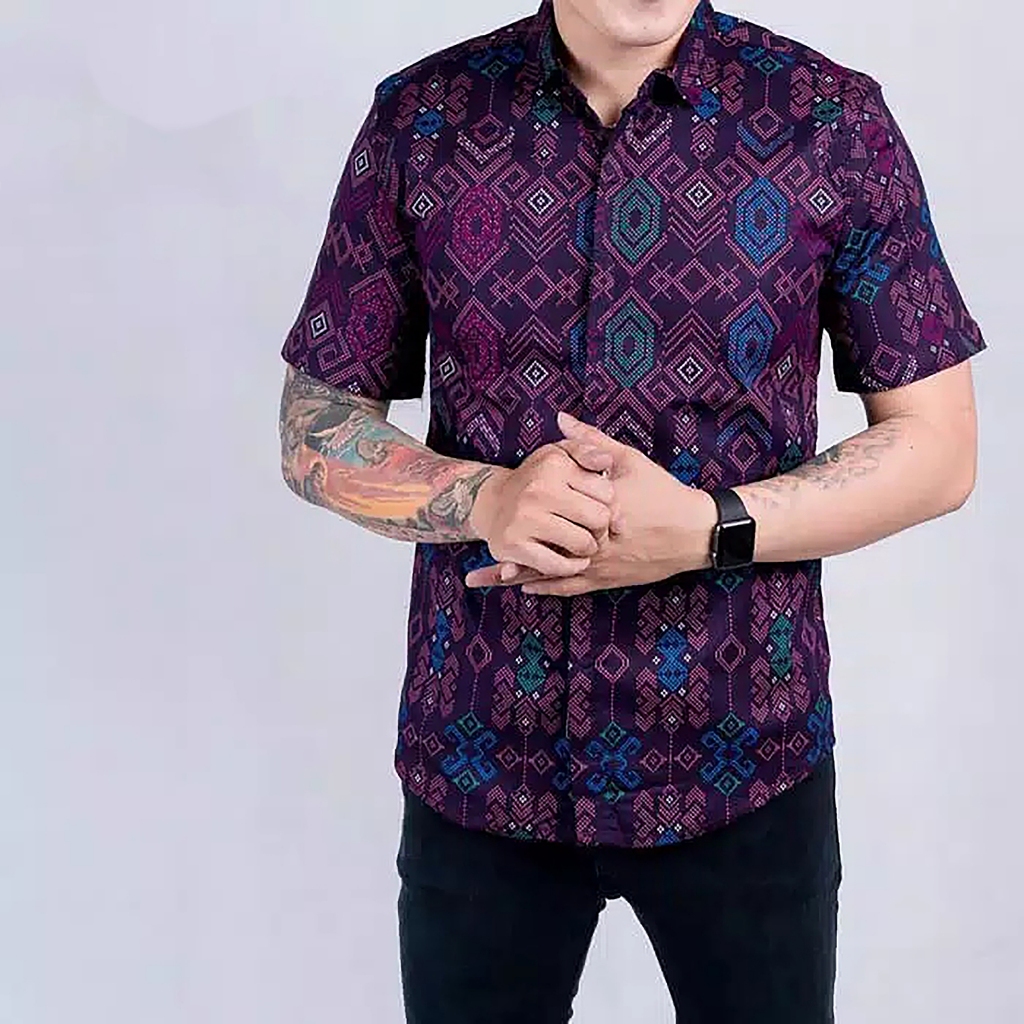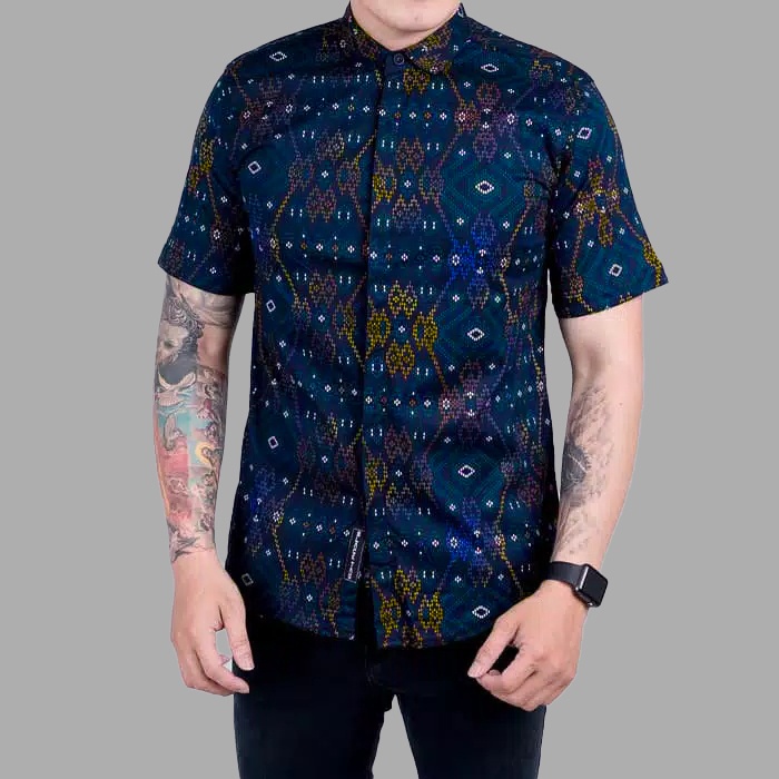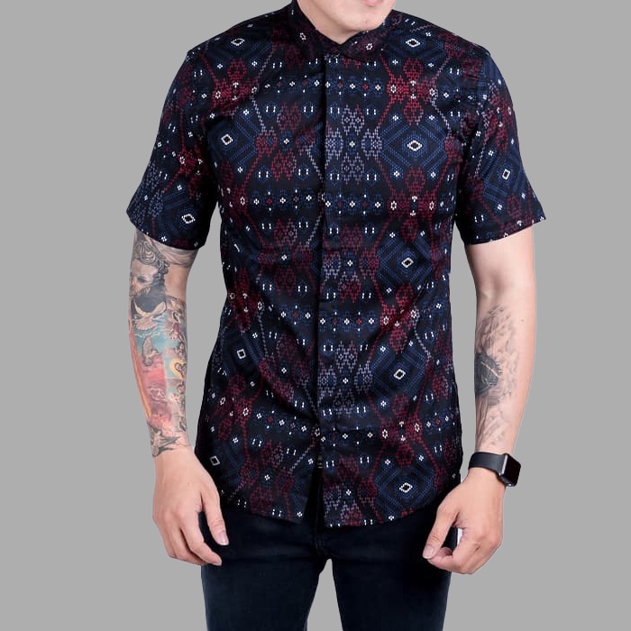 DGM Fashion Kemeja Batik Lengan Pendek Songket Hitam Premium 005 C