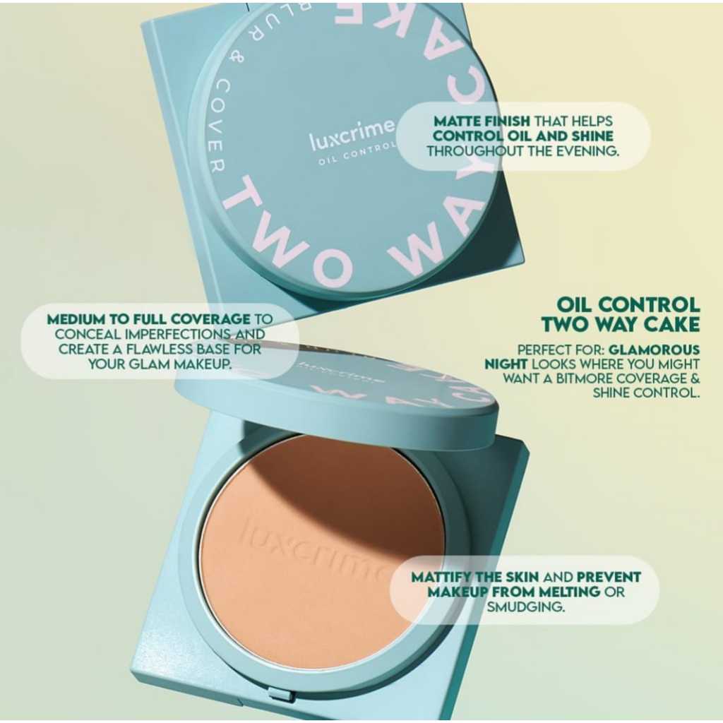Luxcrime Oil Control Blur & Cover Two Way Cake - Bedak Foundation Padat High Coverage Untuk Kulit Halus Tanpa Pori Bebas
