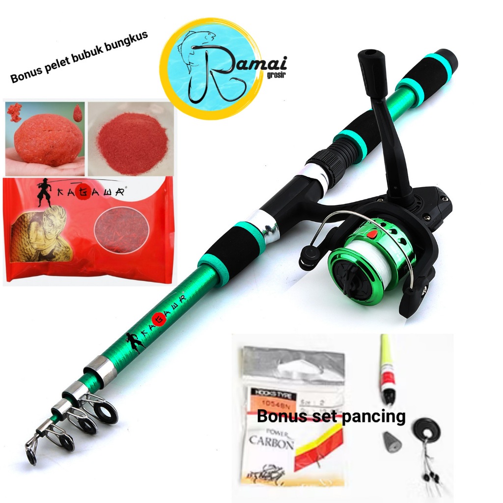 Set Paket Joran Pancing Antena Carbon Kagawa Antena lengkap Pelet tegek Reel Pancing Rill Telescopic style