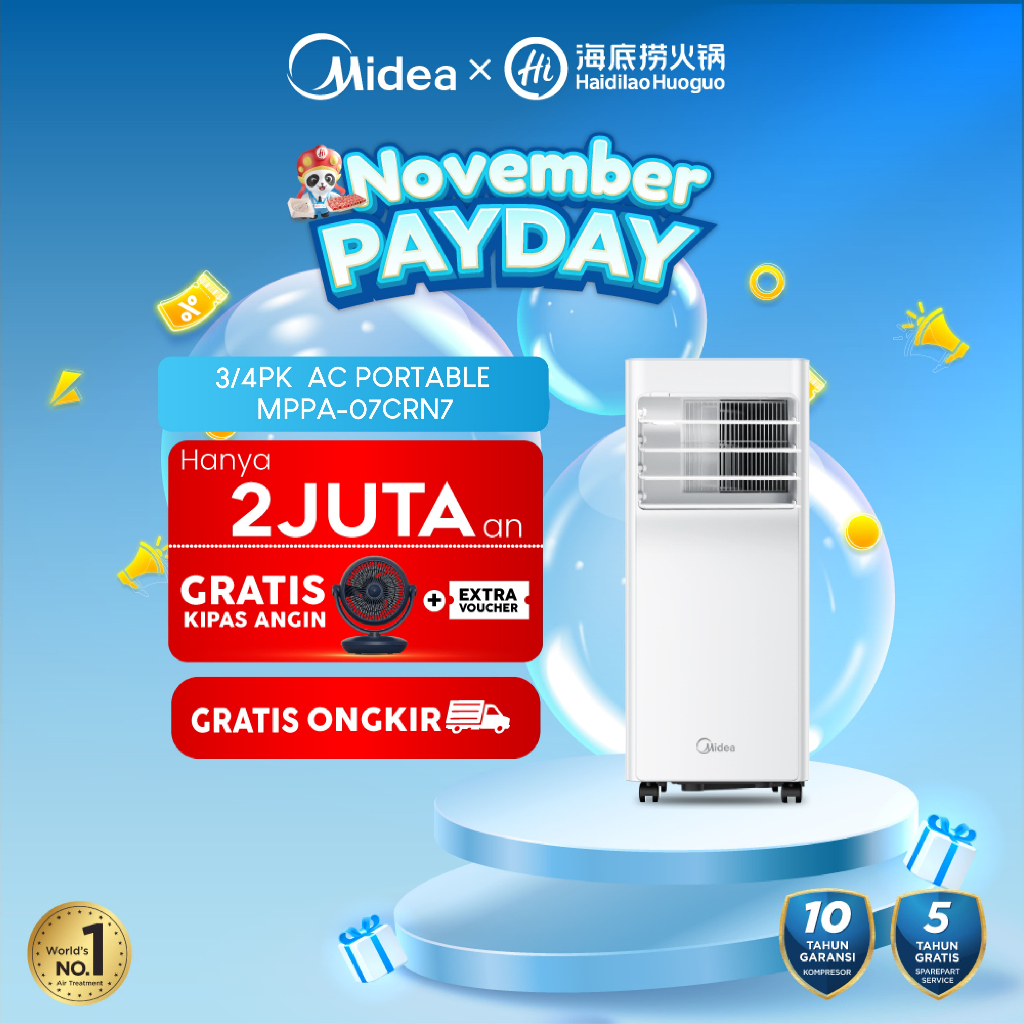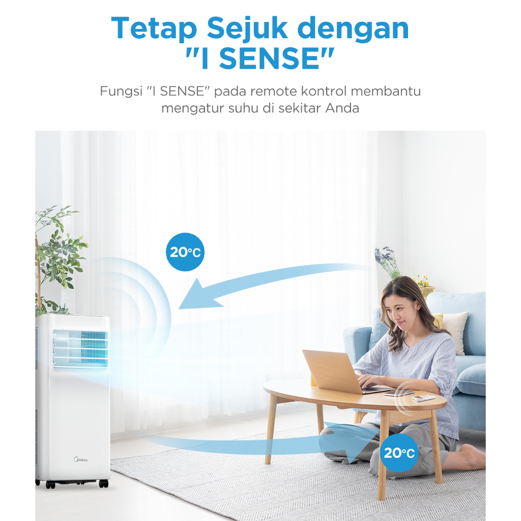 [TERLARIS & TERMURAH] Midea AC Portable MPPA-07/09CRN7 - Dehumidifying - Dingin Lebih Cepat - Fitur I Sense 3/4PK-1PK