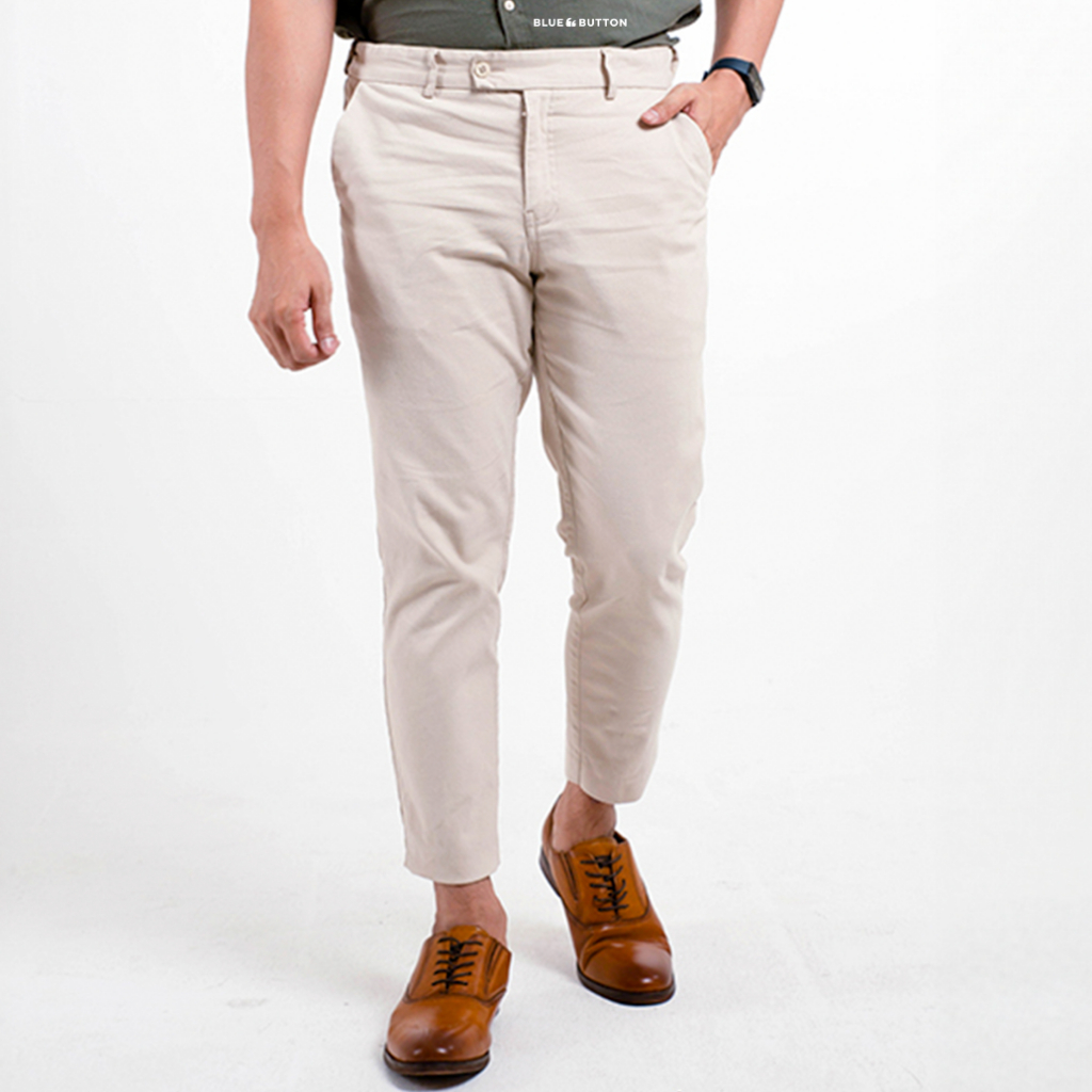 BLUEBUTTON Celana Chino Ankle Pants Slim Fit Cream