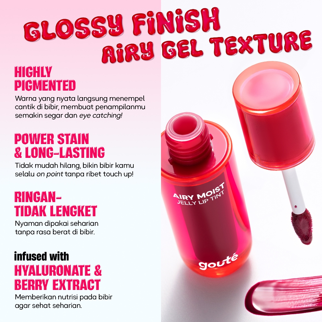 Goute Airy Jelly Lip Tint Stain - Light Moist | Long Lasting Up 12H | Ringan Tahan Lama | Gloss Glossy | Dewy Cheek