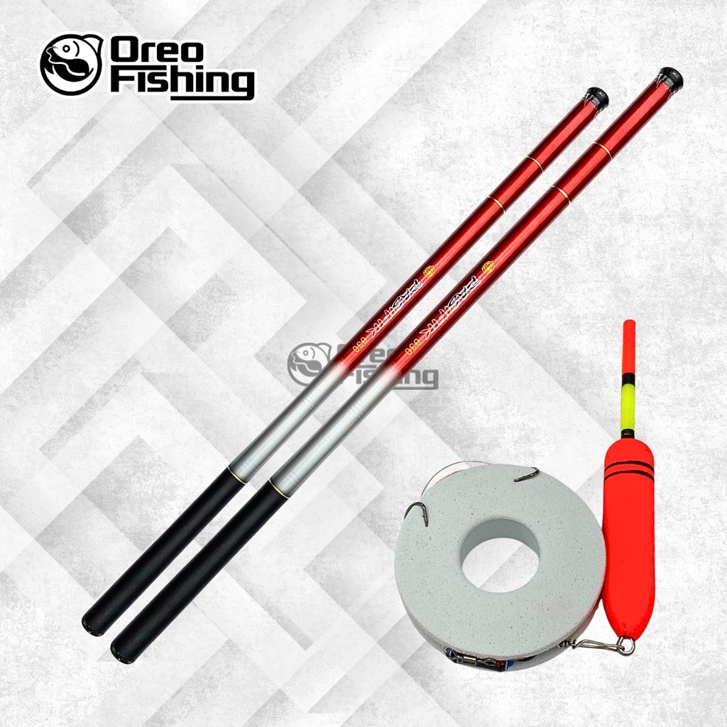 1 Set Lengkap Joran Tegek Fiberglass dengan Senar Pelampung Pemberat dan Kail Ganda