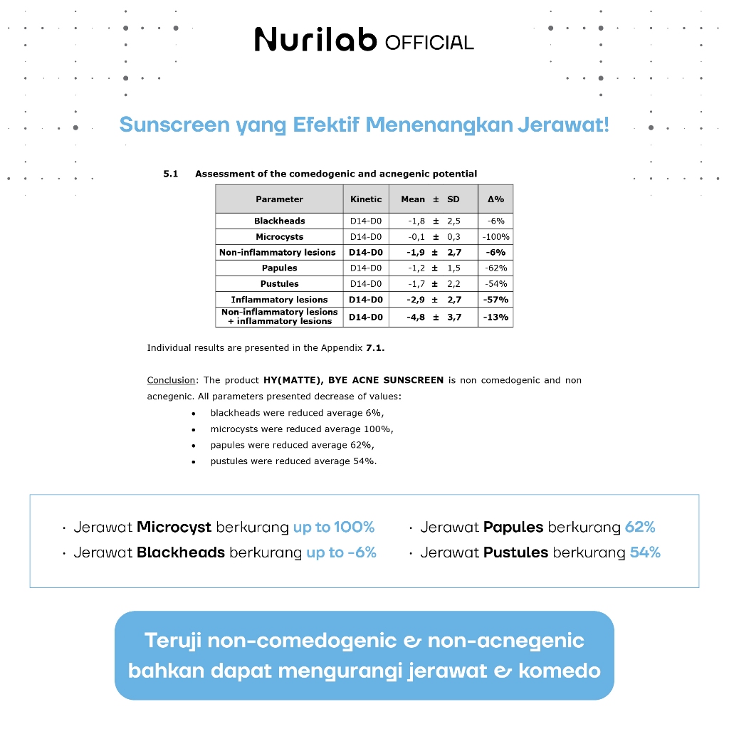 Nurilab - Hy Matte, Bye Uv Sunscreen Spf 50 Pa++++ (Sunscreen Non-Comedogenic Untuk Kulit Berjerawat Dan Berminyak)